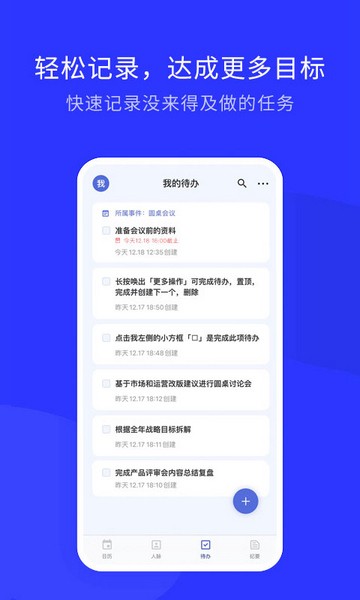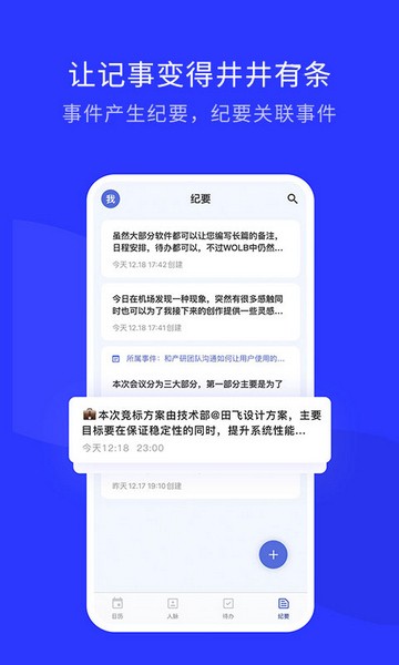 添加纪要:可为事件添加纪要,纪要下支持创建待办。