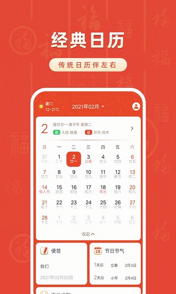 华夏万年历是一款非常实用的日历软件,功能超多,界面简洁,用起来特别方便。最牛的是它支持离线使用,就算手机没网也能查日期,完全不影响使用。里面不仅有公历、农历,还能看黄历、运势,还有各种节气和节日提醒,简直是万能日历。