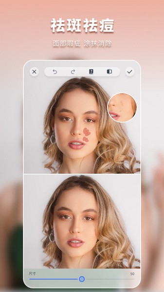 您拍照时不小心把路人甲路人乙也拍进去,影响观感?用我们的app啦,快速把照片中不想要的东西清除掉,还能将人物照片中的斑点瑕疵通通清理掉,方便又实用,使您的美颜照美美哒。