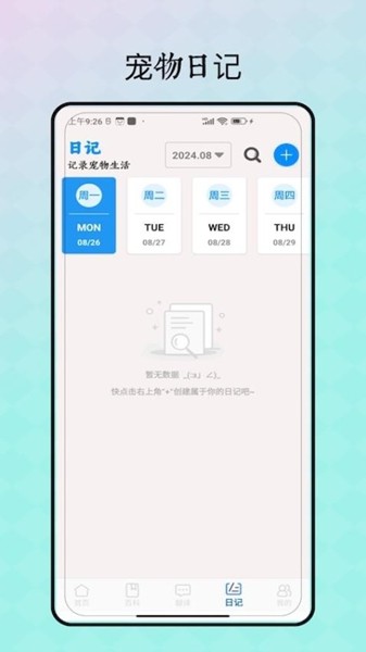 3、在日记板块,就能新建添加记录日常和宠物的生活