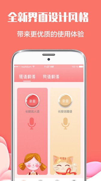 支持所有猫咪、狗狗品种的语言翻译,并有多种类型声音可供挑选