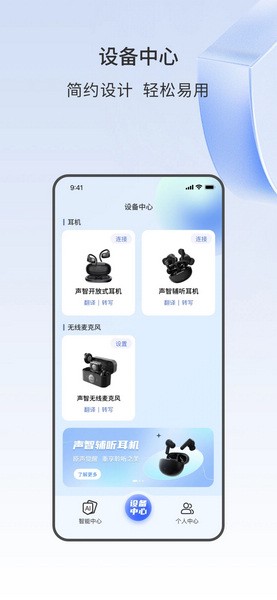 操作便捷 | 简约设计帮助用户快速掌握声智灵耳、领夹麦克风等智能设备连接和操作,轻松易用
