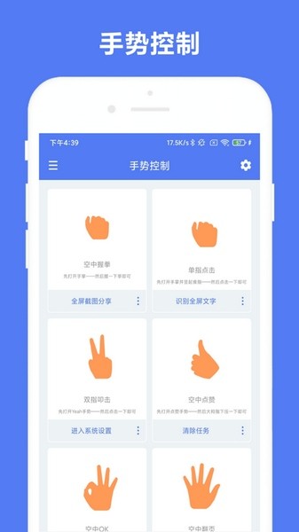 直接进入到手势控制的主页中就能查看到各种不同的手势动作可选择使用。