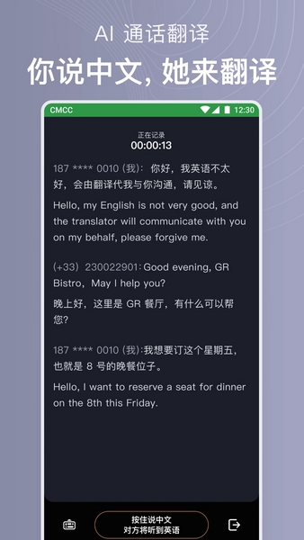 2、支持英语实时翻译,即使与外国人进行英语通话的时候也能在实时翻译为中文;