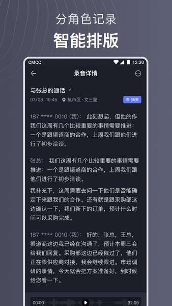 5、智能凸出重点,在全部通话内容之中可以为用户自动标记通话内容中的重点;
