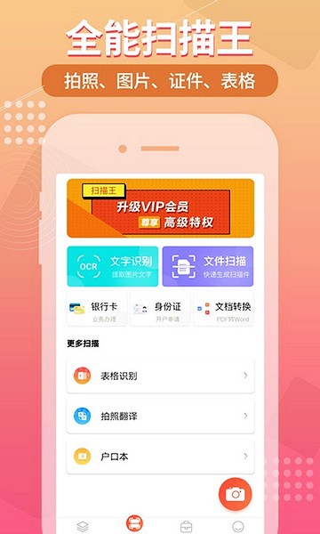 2、小明扫描王是一款非常实用的文字识别在线翻译软件,拥有强大的OCR扫描和证件识别功能,在这里可以随时将图片转换为文字;