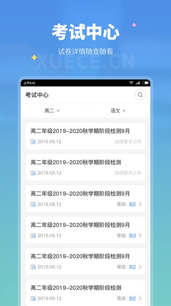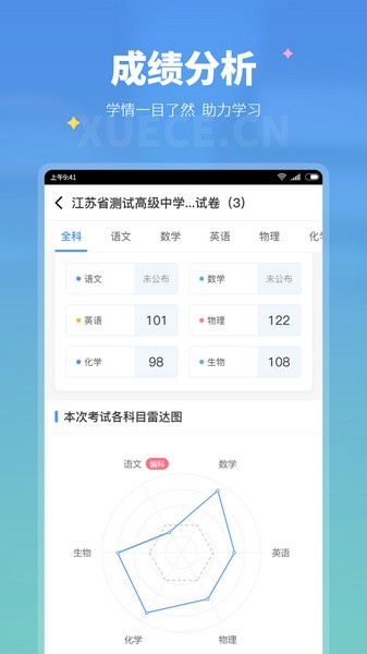 学测网学生版是一款供学生在线查询考试成绩和错题信息的软件。这款软件会在教师完成试卷批改之后通知学生上线查询成绩,每一道题的得分都会显示在软件中,按照学科分类各个试卷,并且会将错题信息整理在一起方便学生之后复习。根据学生的成绩变化来生成学情报告,如果对批改结果有意见可以提交申诉让教师重新审查。