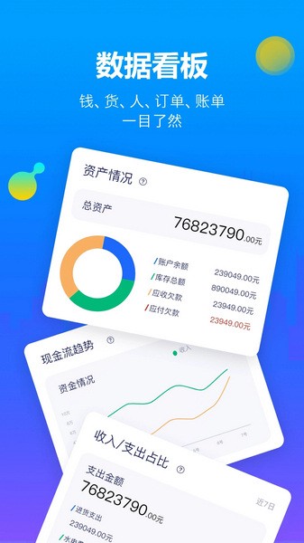 2、账务管理应收\应付款、收入\支出等账务一目了然。