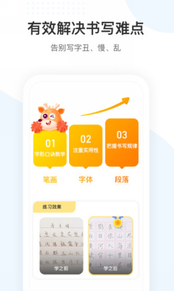 1.线上录播课,随时随地,想学就学:小鹿写字采用录播课的形式,孩子随时可登录app进行课程学习,课程由专业书法老师讲授,在具备专业性的同时兼具趣味性,让孩子爱上练字,真正做到随时随地,想学就学!