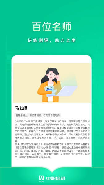 中职培训是一款提供专业职业技能培训功能的手机学习应用软件。在这款软件上用户能够寻找到许多类别的职业培训课程,教授用户各职业的基础技能以及需求的进阶技能,帮助用户更好地拓展自己的职业发展道路,开辟更加光明的未来。每门课程都有专业的讲师负责,将细致的职业课程在线传授给用户,还有配套的课后习题以及多种模拟测试可以使用。