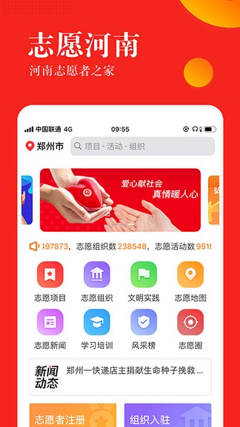 志愿河南app是一款专为河南地区志愿者准备的志愿服务软件。这款软件为志愿者们提供必要的服务支持,用户可以在这里申请成为志愿者,在经过审核通过后就可以成为志愿者并以志愿者的身份报名参加河南当地的各类志愿者活动。软件每天都会更新公布最新的志愿活动动态,用户可以及时查看浏览新消息,看看其他志愿者们的活跃。当用户在软件上报名志愿活动并顺利签到后会自动计时用户的志愿时长,签到开始、签退停止,用户的每一次志愿活动都会被记录,并且还可在软件上查看志愿者活动时间排行。如果想要更加快速和频繁地参加志愿活动的话可以考虑申请加入志愿组织,软件上有许多志愿组织活跃,用户可以在线申请加入组织,可以通过组织接收更多的志愿活动信息,结交更多的同好。此外,用户每次参加志愿活动都可以根据志愿时长来获得一定的代币,这些代币可以在商城中兑换一些小礼品。