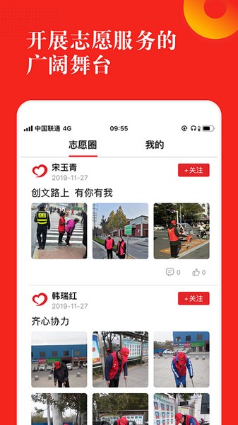 3、在线管理用户的相关服务信息,分享志愿服务当中的乐趣和喜悦。