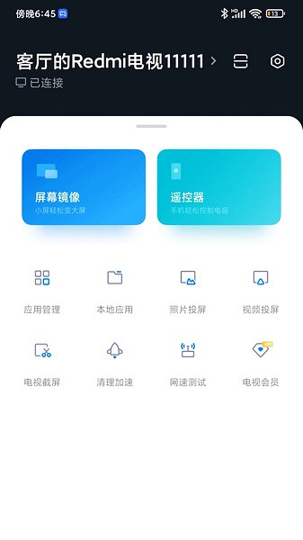 6、下图所示即为连接成功的效果,接下来我们就可以使用手机app控制电视设备进行遥控或投屏等各种操作了。