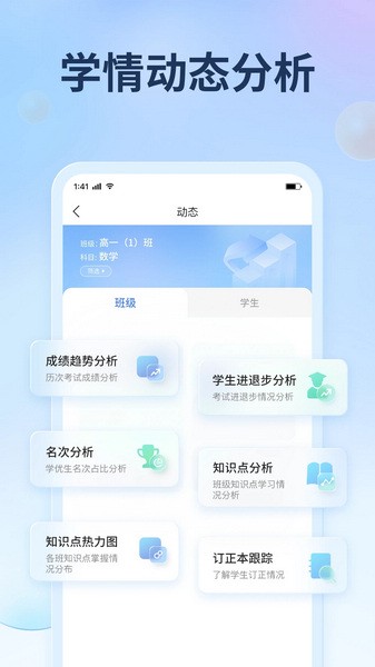 · 建立知识点"标签化"体系,轻松查看学生的知识掌握情况,实现个性化教学管理;