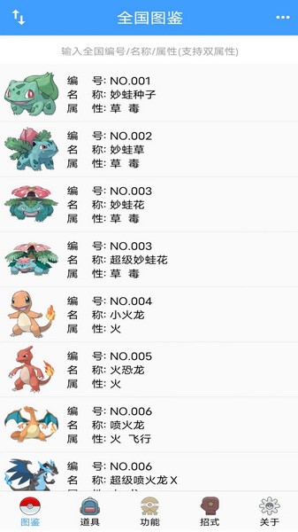 神奇宝贝图鉴app是一款有着超全的精灵宠物以及道具、地点等详细信息的软件,宝可梦的粉丝们能够在这里增加对精灵的了解,帮助玩家更好的去游戏。便捷的搜索功能让玩家只需要输入关键词就能够获得对应的结果,数百种神奇宝贝图鉴更是涵盖了精灵的各类属性、进化要求以及技能等超多信息,可以帮助玩家更快的了解任何关于宝可梦的详细情报。