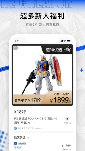 造物的亮点还包括优选好货、超多福利和全网比价,新人注册还能领取519元现金券。软件的优势在于风格多样,个性创作,实时预览效果,并支持一键保存设计作品。对于手办爱好者来说,这款软件不仅是一个购物平台,更是交流和分享的好地方。