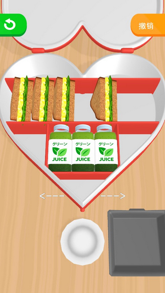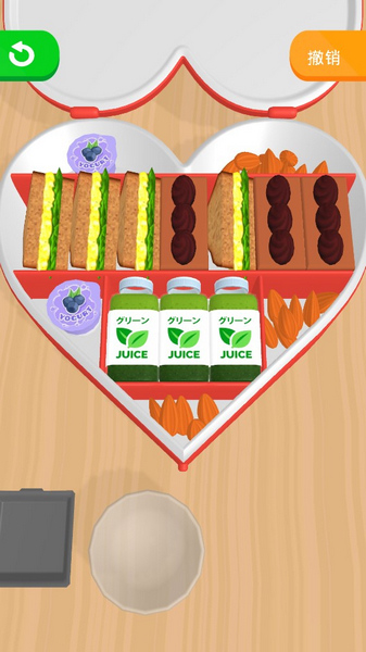 4、解压音效反馈:摆放食材时的“咔嗒”入位声、餐盒盖闭合的“啪嗒”声,搭配轻柔的背景音乐,构建沉浸式的治愈体验。