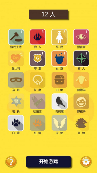 游戏中,狼人、预言家、村民是必须要使用的,其余角色根据游戏人数可适当加入(增加其余角色,下表中村民数量相应减少)。