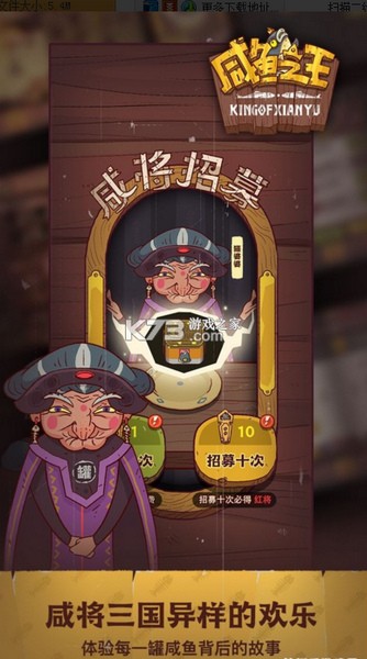 咸鱼之王国际服是一款以三国题材为背景的策略卡牌游戏,又称为Idle Fish Kingdoms。游戏以咸鱼形象代替三国英雄,呈现出清奇搞怪的风格,独具特色。玩家在游戏中扮演阿咸,指挥各类咸鱼进行排兵布阵,抵御邪恶咸鱼的入侵。游戏界面简洁独特,配合幽默搞笑的音乐,让玩家在搞笑中体验策略对决的乐趣。游戏操作简单易上手,适合游戏新手,且支持挂机操作,让玩家可以轻松获得游戏乐趣。快来下载体验吧!