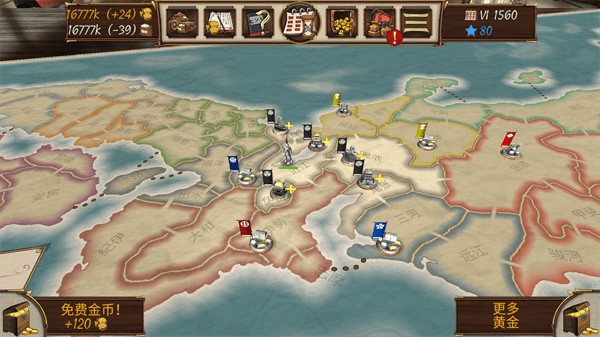 3、前期只需要一支能打的部队就够了,认准一个方向一路平推过去,地盘其他方向不用管,他要打你你就花钱议和,花不了几个钱,等这个方向打通关了,把部队调过来再收拾他们。中期可以考虑另开一支部队,将军选最好的能减少军费开支,武士最好花钱升一两级,必须要有远程火力,首选火炮。
