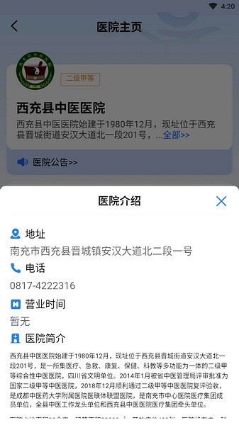 1、包含全面的医院介绍信息和医生介绍信息,方便您找到合适的医院和专家医生进行在线注册;