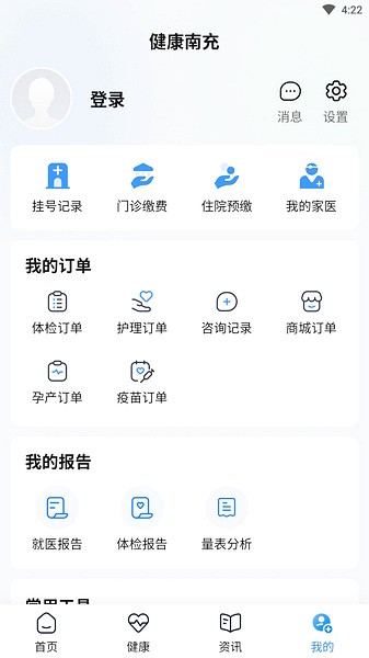 健康南充app是一款非常好用的医疗服务软件,平台内为用户们提供了十分便捷且轻松的医疗就诊服务,大家通过该软件可以直接在线预约和挂号,可以随意选择科室和医生进行预约。并且这款软件目前已经连接了南充市中心医院,可以更好的服务南充的市民,支持门诊缴费、查看和打印报告单、与医生联系和沟通等等,是南充健康咨询与挂号就医的不二之选。
