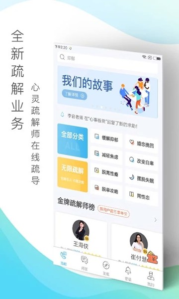 【即时语音倾诉】: 当你需要释放情绪、需求安慰或倾吐秘密时,挑选最合适的在线专家,倾听你的烦恼,立即释放你的坏情绪;