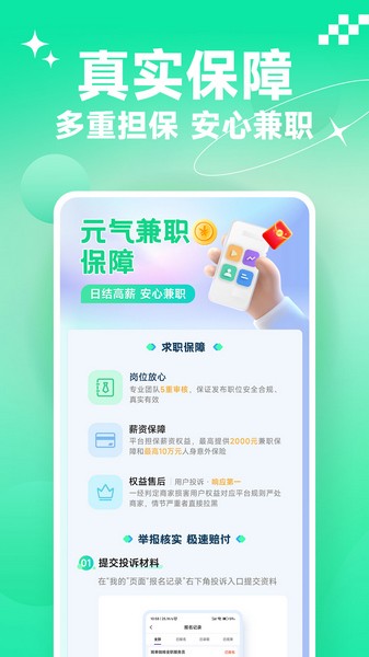 元气兼职APP是一个帮人找兼职的好工具,适合18到40岁的人群,包括学生、宝妈、白领等等。这个平台有很多日结的工作,做完当天就能拿到钱,感觉挺方便的。而且他们还有预支付托管模式,就是说企业交了一笔保证金在平台上,如果出现问题会优先用这笔钱赔付,这样打工人的权益更有保障了。
