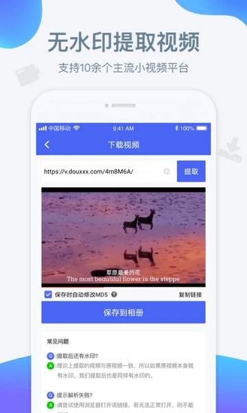 水印宝,支持无痕「提取无水印视频」和「去视频水印」。