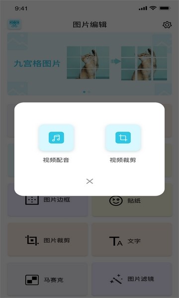 3.支持视频配音、视频裁剪、图片加边框、翻转,裁剪,马赛克,加文字,贴纸等多功能。