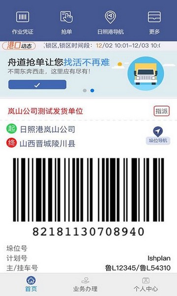 1、日照港舟道网司机专版app为司机用户提供的场地作业单,各项信息均在作业单上方进行显示,方便查看。