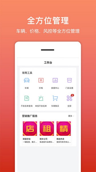 【全方位管理】:车辆、价格、风控等全方位管理。