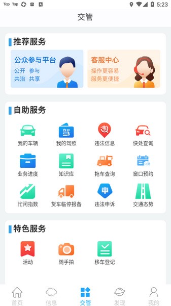 1、业务咨询服务。通过交管业务知识库,了解在行交通管理的法律法规业务办理指南业务知识、交通安全常识等丰富内容;用户可以自助通过关键字进行检索系统自动回对于自动回复无法解决的问题可通过人工服务方式解决。