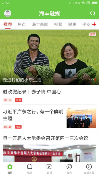 海丰融媒app是一款权威的当地新闻服务平台,能够为用户带来全面的资讯消息和电视广播节目。软件集本地资讯、政务和便民服务等多项功能于一体,集合了电视新闻、报纸、广播、两微一端等多平台的信息内容,为用户提供综合的信息资讯。用户在这里除了可以了解最新最全的新闻资讯之外,还能够查询社保、交通、天气以及进行养老缴费等,为当地居民的日常生活出行提供便利。