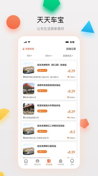 3、折扣加油页面,主要是50km内优惠加油的加油站地点和油价;