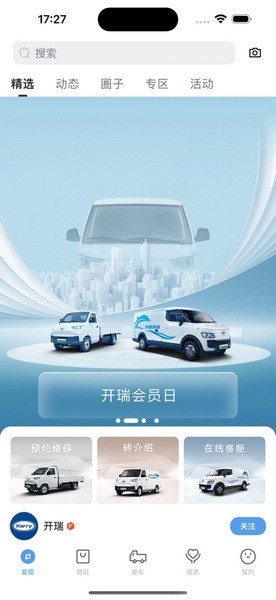 开瑞汽车app是一款为开瑞和奇瑞汽车车主提供汽车资讯和车主服务的软件。在这款软件中用户可以查询到相关汽车品牌最新的产品信息,所有推出的汽车型号都可以了解详情。同时,用户可以通过软件来查找合适的车上用品,丰富自己的车载装备。此外,用户可以在论坛交流区发帖与其他的用户沟通,解答问题或者寻求解答。
