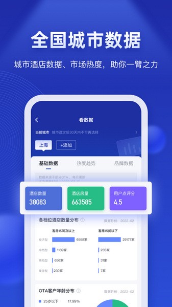 全国城市数据,出行热度、市场热度,助你一臂之力,转酒店/买酒店,汇聚酒店投资人,成交更快速。