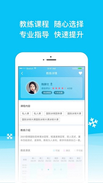 6、拥有专业私教,在此可以选择任意滑冰教练作为自己个人的私教;