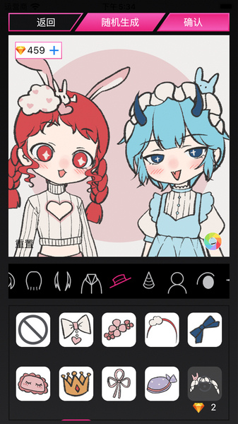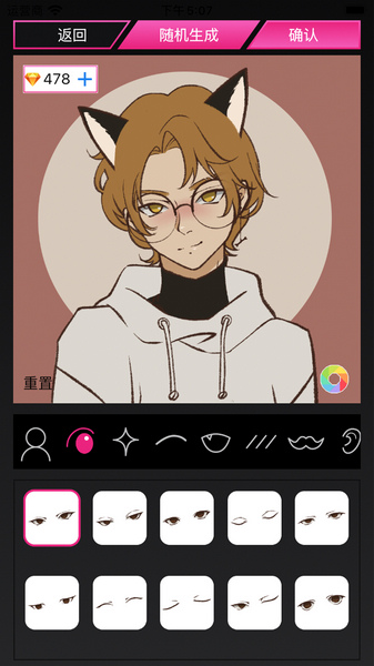 4、选择最适合的发型和各种饰品,可以根据心目中的完美打造一个相识度最高的二次元形象。