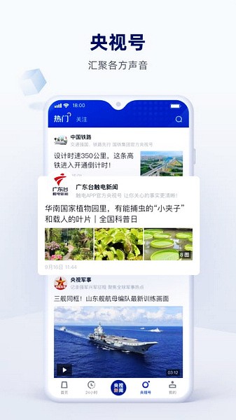 央视新闻APP不仅提供独家新闻视频和权威评论,还支持语音播报和新闻频道全天直播。用户可以在这里获得最新资讯,了解重大新闻发布,24小时追踪突发事件,并享受智能内容推荐,满足用户的双手阅读需求。这款应用的特色在于突发事件及时播报,让用户不再错过精彩节目和内容。央视新闻APP提供了更多元、更全面的用户体验,是用户获取新闻资讯的首选软件。
