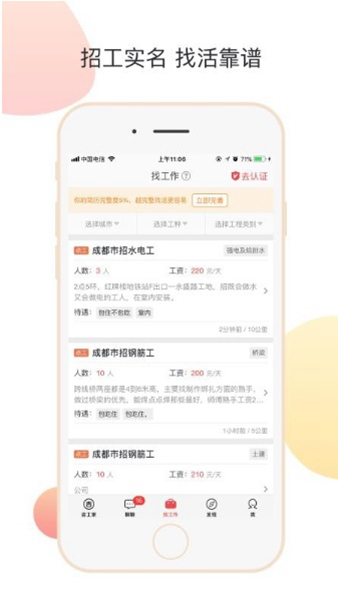 全部经过实名认证,员工以及招工信息全部认证更靠谱;