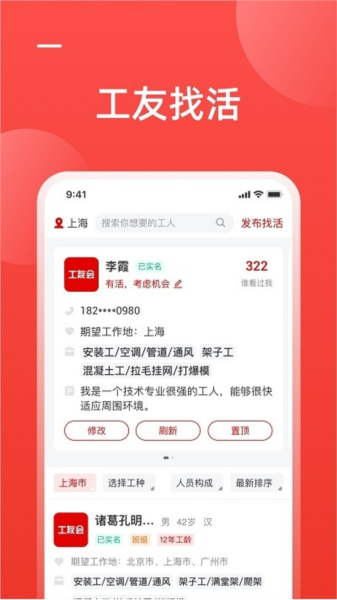 3.汇集了全国各地的建筑工招聘信息和求职信息,可以找到更多更合适的工作机会,解决你的就业问题。
