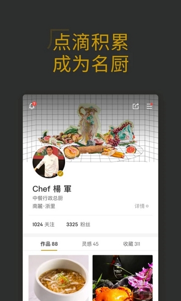 可以发布分享自己的作品,与专业厨师一起交流