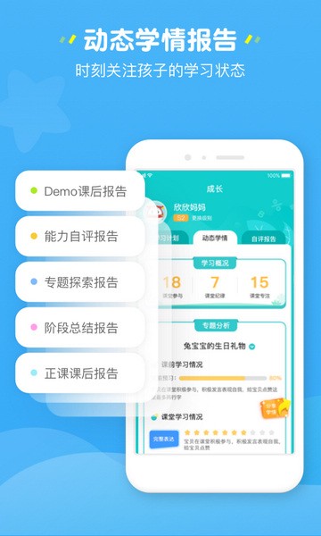 每节课后学习报告实时生成,孩子学习表现数据化呈现