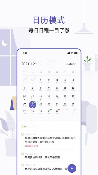 1、日历模式日程,每日日程一目了然