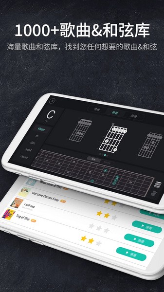我们提供的几千种和弦库,可让你随时随地查看任何和弦。当您聆听音乐或弹吉他时,和弦库可帮助您在指板上找到您想要的任何和弦