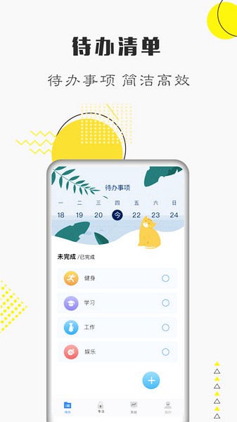 1、创建待办清单:按照自己的需要一键创建待办清单,简洁高效,记住自己每一项要去完成的重要事项,让自己自律