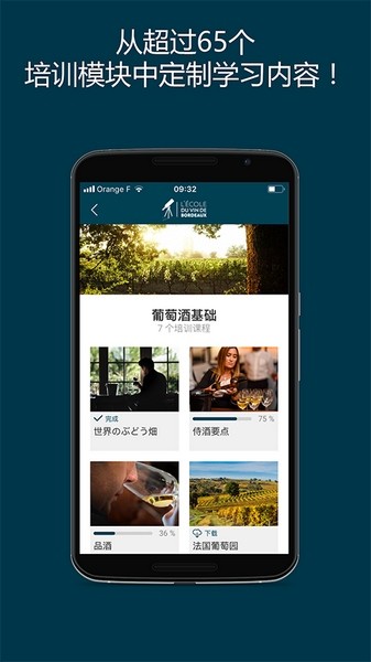 1、有适用于不同葡萄酒岗位的优秀案例:餐酒搭配、组织葡萄酒展销会、品酒方法…… 掌上波尔多OenoBordeaux还囊括了有关葡萄酒世界趋势、创新和活动等多项新闻资讯。