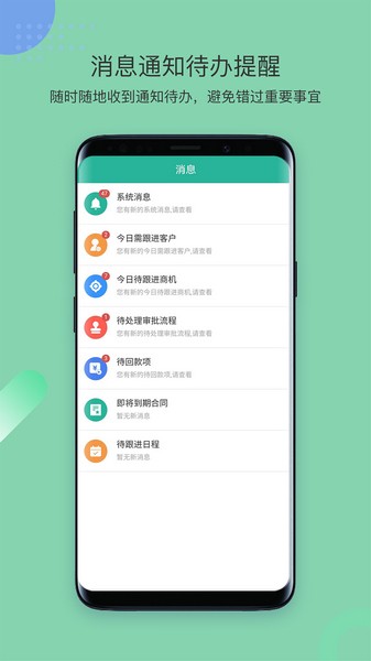 通知推送使用手机处理其他业务的同时,可收到消息推送提醒,点击一秒直达信息详情,事务处理更快捷。