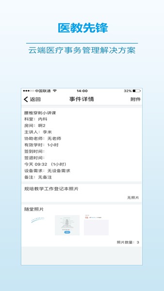 医教先锋app是一款医疗办公类软件,在这里提供了丰富的功能,可帮助用户轻松高效的完成医疗事务的处理和管理。软件中提供了丰富的解决方案,有着完整的事务管理流程。这里还提供了医学技能的教学培训,更好的提升医学水平。